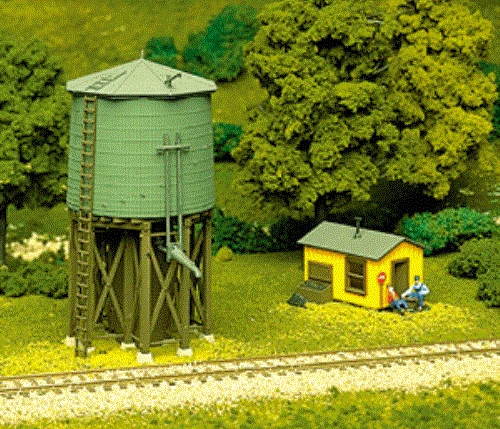 Your Atlas Water Tank has been patterned after a tank that served Pennsy engines at North Madison, Indiana. However, it will look at home on your pike no matter which prototype road you favor. With the exception of the size and minor details, most wooden water tanks look a good bit alike, yet amazingly enough it seems that no two water tanks on any railroad were exactly alike, except perhaps in those instances where a railroad found it necessary to erect several tanks side by side.