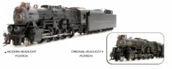 In 1916, the Pennsy railroad developed a new, supersized 2-10-0 steam engine that was powerful enough to move the tremendous amounts of coal and ore being moved on the system. Initial tests were impressive, and between 1918 and 1923, the PRR built 598 Class I1s Decapods. They were the largest 2-10-0 steam locomotives in the United States, and they became the dominant freight locomotives on the PRR railroad system until World War II. Sometimes called “hippos”, the I1s’s were huge. Unfortunately, the large boiler size limited the amount of space for large driving wheels, and the result was a hard ride and hard work for crews. Their power was undeniable, and they remained in service until the end of PRR steam in 1957. BLI’s model is of the sub-class I1sa locomotives. With the conversion to I1sa, Pennsy increased the maximum steam cut-off, boosting low speed tractive effort. 489 of the hippos were eventually converted.