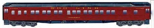 The 8 section – 1 drawing room – 2 compartment sleeper was one of Pullman’s most popular designs. In 1937 there were 243 cars built to plans 3979a alone. Nearly half of these cars were used in Pullman pool service nation wide, the rest were assigned to, and painted for, various railroads nationwide. These models feature correct air-conditioning parts and full lettering including car names.