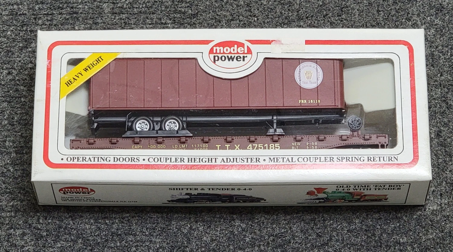 HO Scale 50′ Flatcar with Trailer Pennsylvania PRR