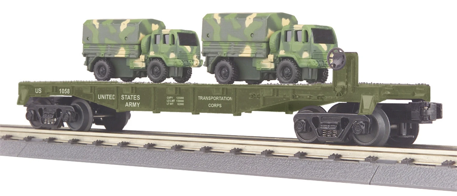 MTH RailKing 30-76042 O Gauge Flatcar with US ARMY Troop Carriers