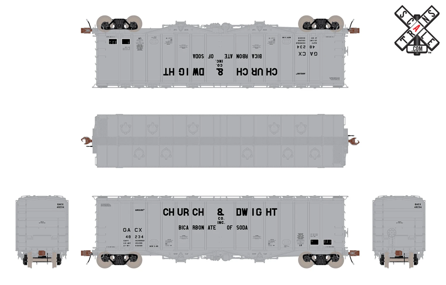 ScaleTrains HO Scale 32994 Rivet 4180 Airslide Hopper Church & Dwight GACX 48234