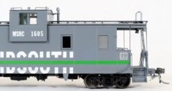 MidSouth Rail Corporation (MSRC) “Gray Repaint 1989+” is our second example of an IC Centralia Wide Vision caboose that has found its way to an ICG spin-off railroad. The MidSouth Rail Corporation started operation in 1986, taking over several hundred miles of ex-ICG lines in Mississippi and Louisiana. The MidSouth rostered a few ex-ICG cabooses. This example was repainted by MidSouth into a beautiful gray scheme with a green stripe and tall MIDSOUTH graphics. This MSRC caboose survived the ICG era with its body windows intact but did have its end marker lights plated over. This is a Pullman roof ex-IC car, so it also has all the underframe features to match these 1972 builds, including the IC style battery box. Each piece of lettering is carefully reproduced on this caboose, from the accurate COTS panel data to the “NO. 2 DIESEL FUEL” lettering on the A-end. Finally, an accurate caboose to put behind those MSRC Geeps!