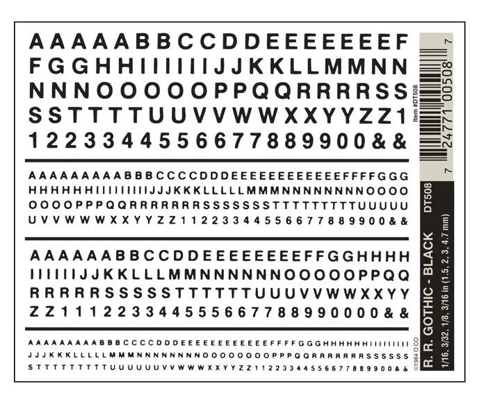 Woodland Scenics DT508 Dry Transfer Decals – Railroad Gothic Letters, Black